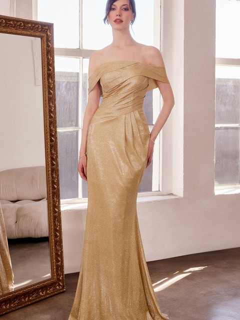 Ladivine T603 Glitter metallic off the shoulder ruched dress